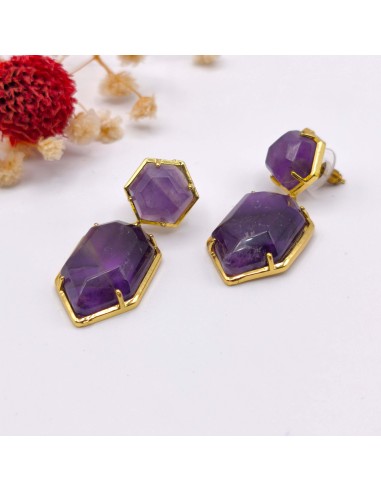 PENDIENTES DE AMATISTA FACETADA EN PLATA 8MM CRISTAL PARA INTUICIÓN, SERENIDAD Y...