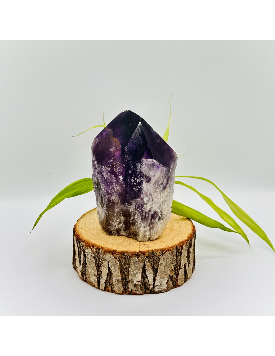 Colocada en el ambiente, la punta de amatista purifica vibraciones densas y dirige la energía hacia una mayor armonía y equilibrio. Es especialmente indicada para escritorios, altares, espacios de meditación o lugares donde se desee fortalecer la protección espiritual y la claridad mental. Su presencia ayuda a estabilizar emociones, iluminar caminos internos y crear un campo de energía sutil que sostiene prácticas espirituales y terapéuticas.