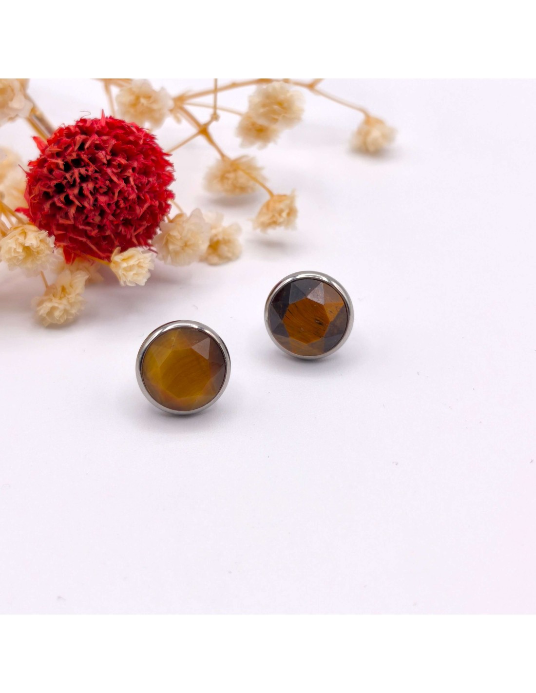 Usar o Olho de Tigre junto ao campo energético superior fortalece a coragem, a autoestima e a energia pessoal, criando um escudo vibracional que afasta energias densas e estimula a clareza mental. Estes brincos unem elegância e propósito, sendo perfeitos para quem deseja sentir-se protegido, confiante e alinhado com o seu poder interior.