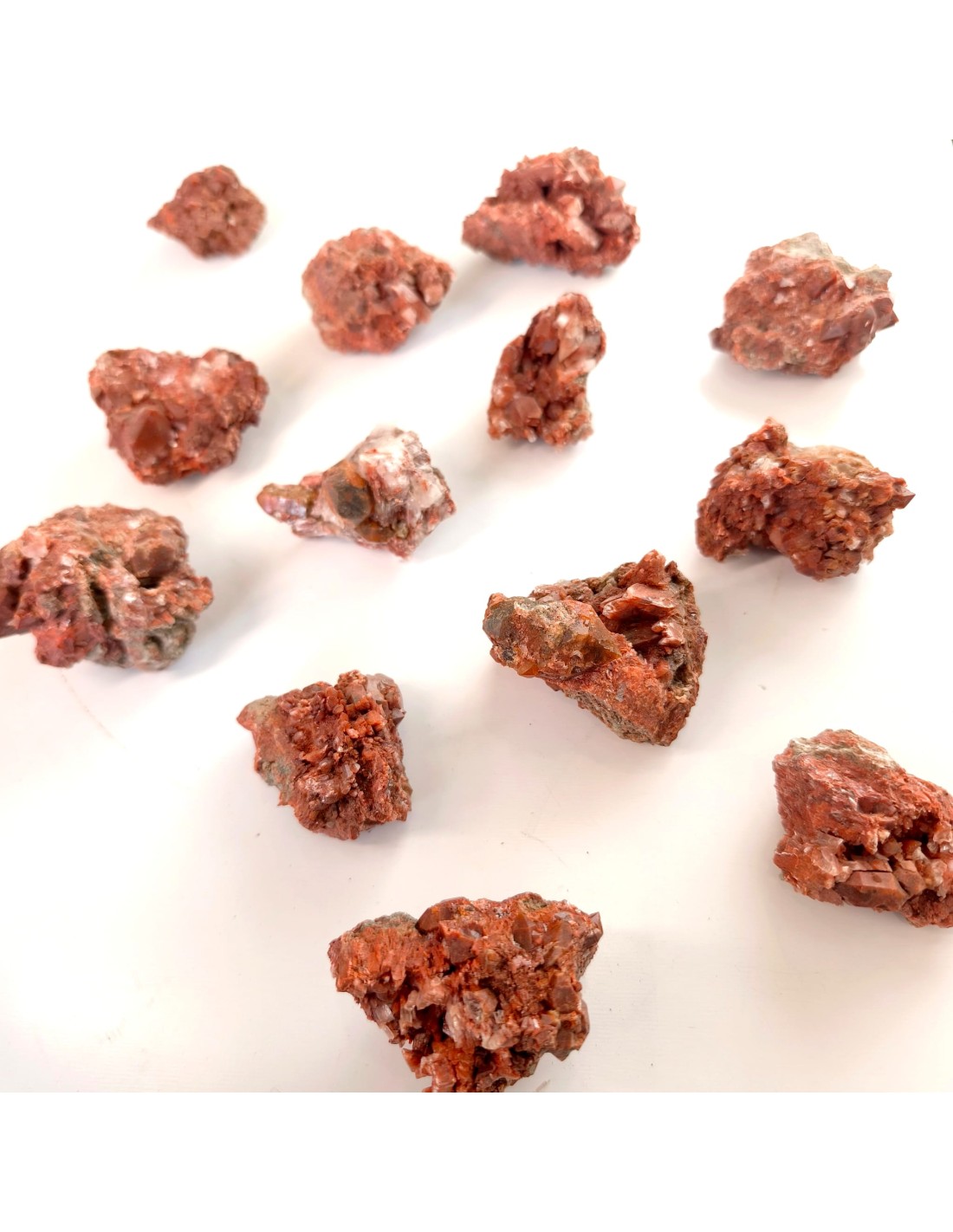 A gipsita vermelha é uma variação do cristal gipsita (também conhecido como gesso) com inclusão natural de óxidos de ferro, que lhe conferem a sua coloração avermelhada característica. Esta presença do ferro torna-a um cristal com vibração de fogo-terra, excelente para processos de ancoramento, coragem, limpeza emocional profunda e regeneração sutil do campo energético.
