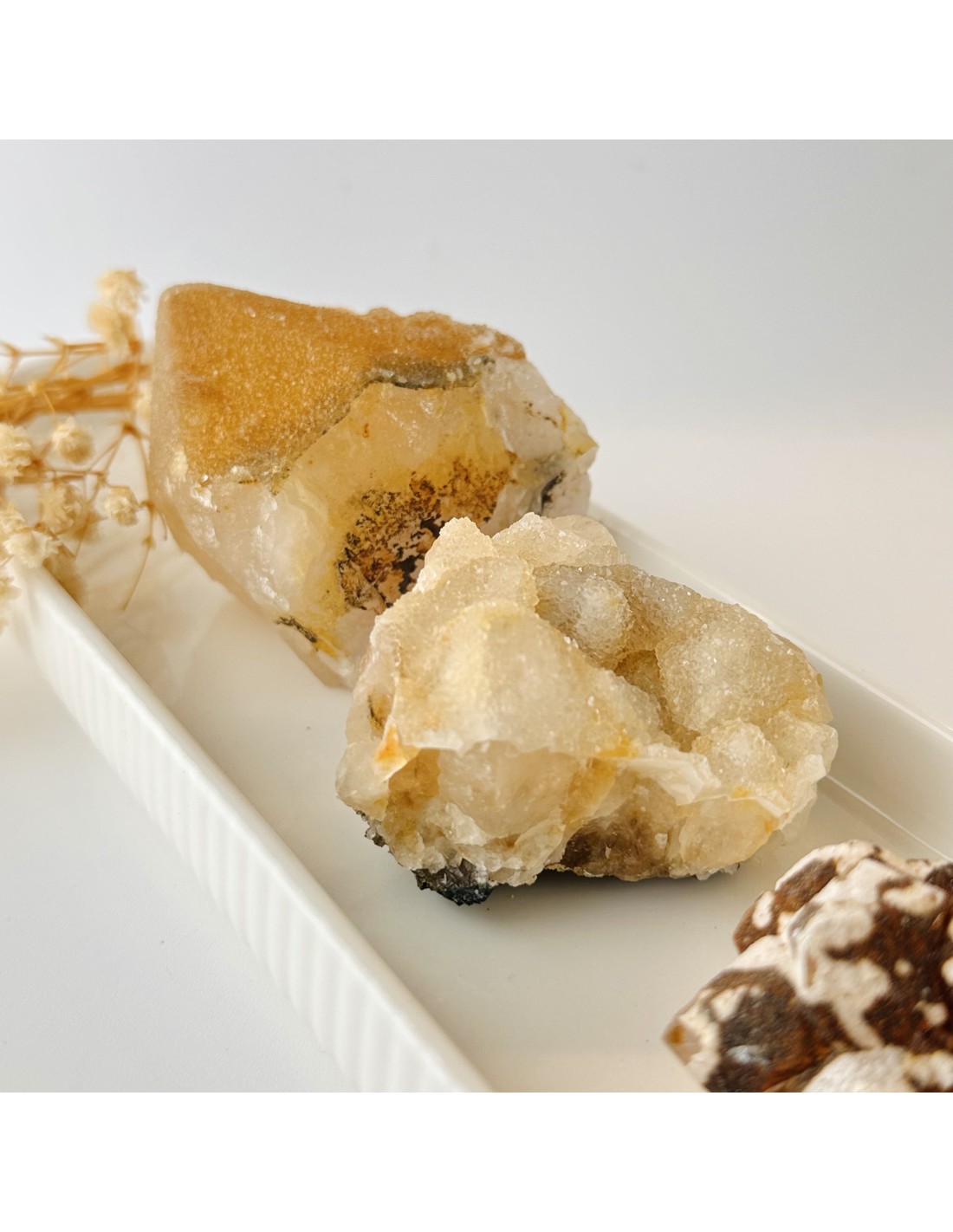 O quartzo com calcedónia é um cristal profundamente terapêutico, ideal para quem procura comunicar com autenticidade, encontrar equilíbrio emocional e alinhar mente e coração. Esta combinação natural une a clareza vibracional do quartzo com a suavidade expressiva da calcedónia, criando uma energia de cura e reconexão interior.