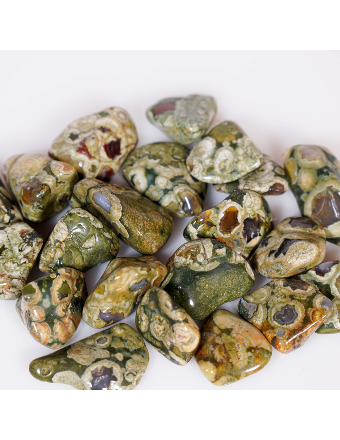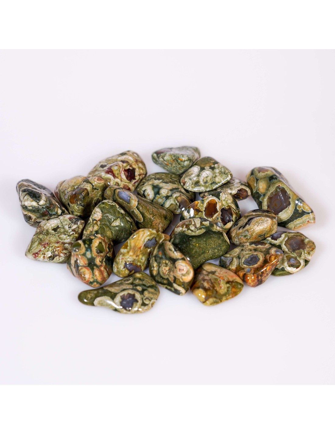 As suas tonalidades verdes e terrosas refletem crescimento, vitalidade e regeneração. A riolite ensina a viver com raízes firmes e consciência expandida. Atua como guia no despertar espiritual, promovendo equilíbrio, gratidão e ligação profunda à Terra.