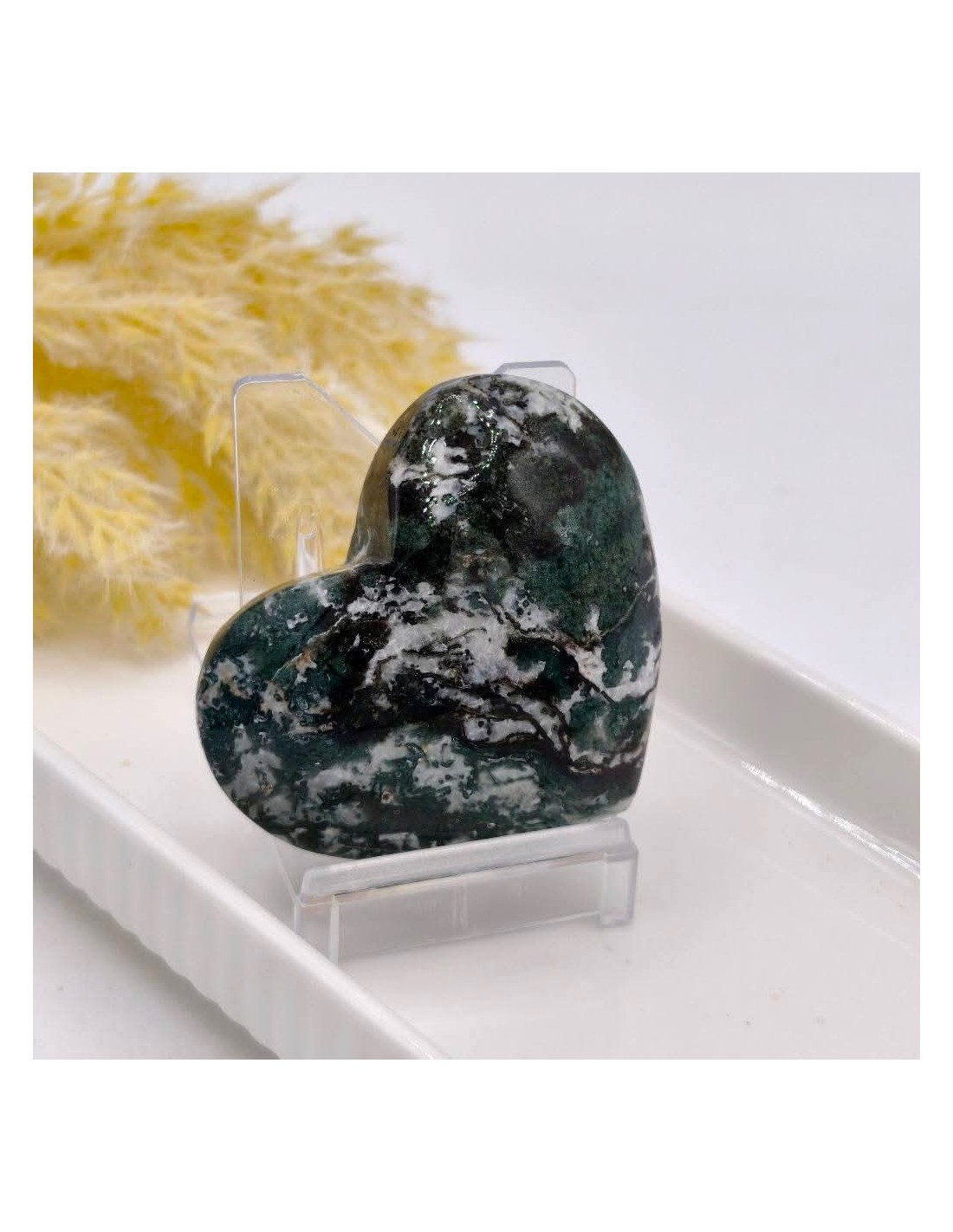 O Coração de Ágata Musgo traz energia, serenidade e uma poderosa ligação à essência da natureza, sendo um verdadeiro símbolo de amor e conexão com o mundo natural.
