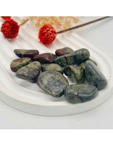 Trata-se de uma calcedônia verde que contém presença de ferro, que se acentua em forma de pontos vermelhos, formando uma linda pedra.