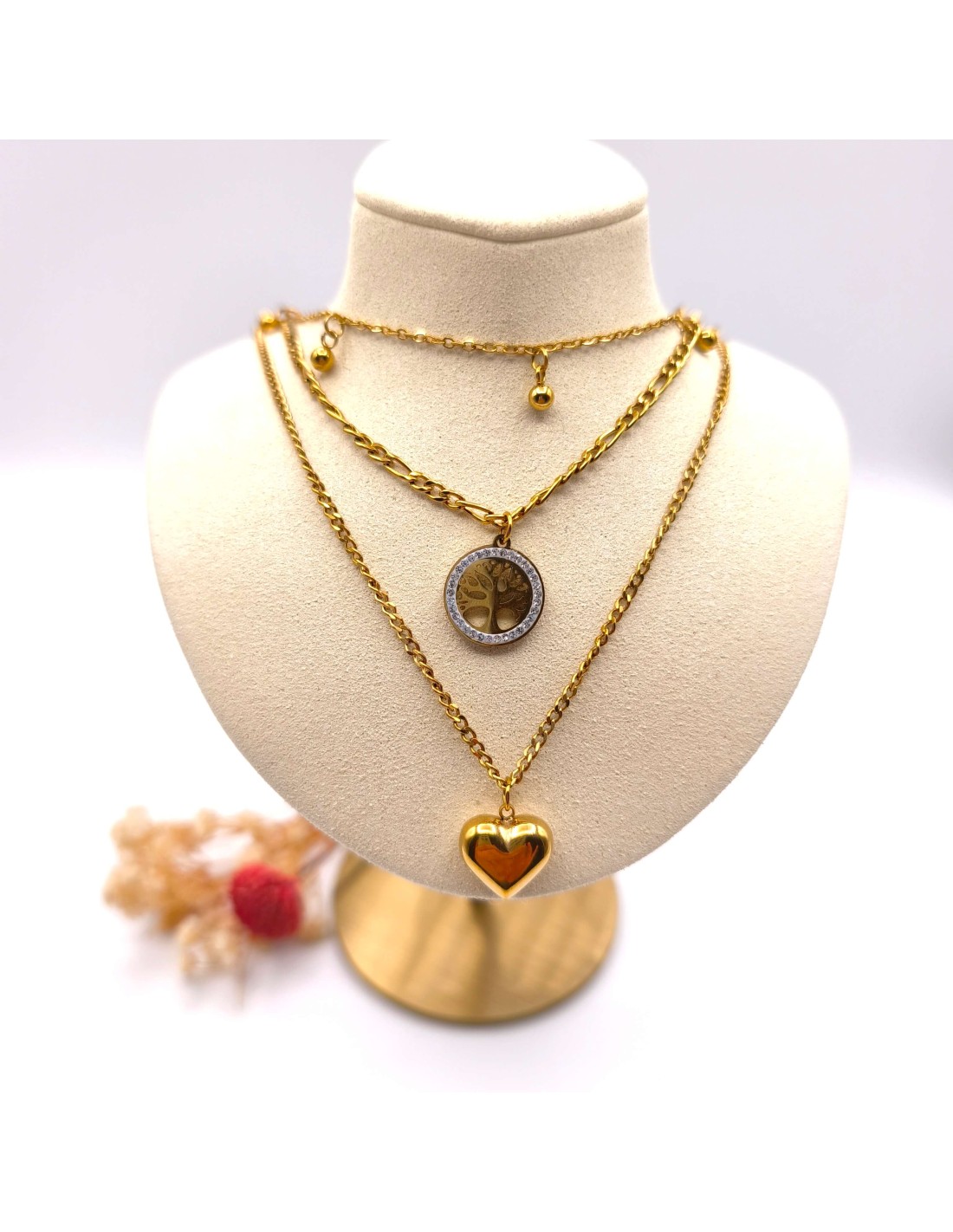 COLAR TRIPLO ÁRVORE DA VIDA EM AÇO INOXIDÁVEL