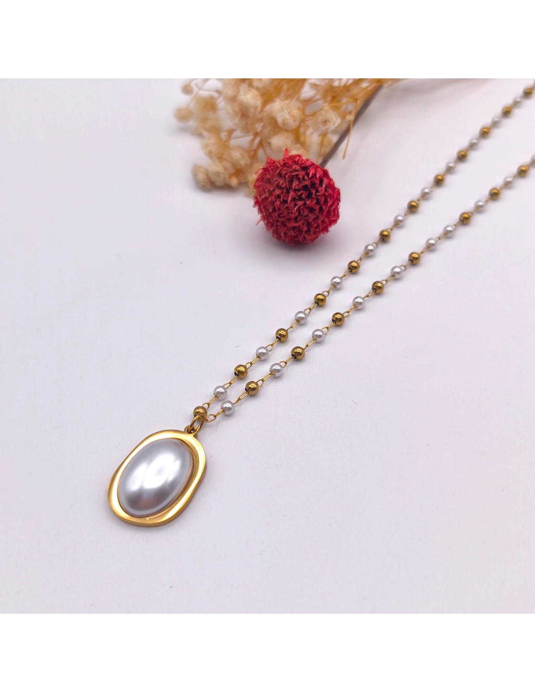 COLAR DE PÉROLAS ROSÁRIO EM AÇO INOXIDÁVEL