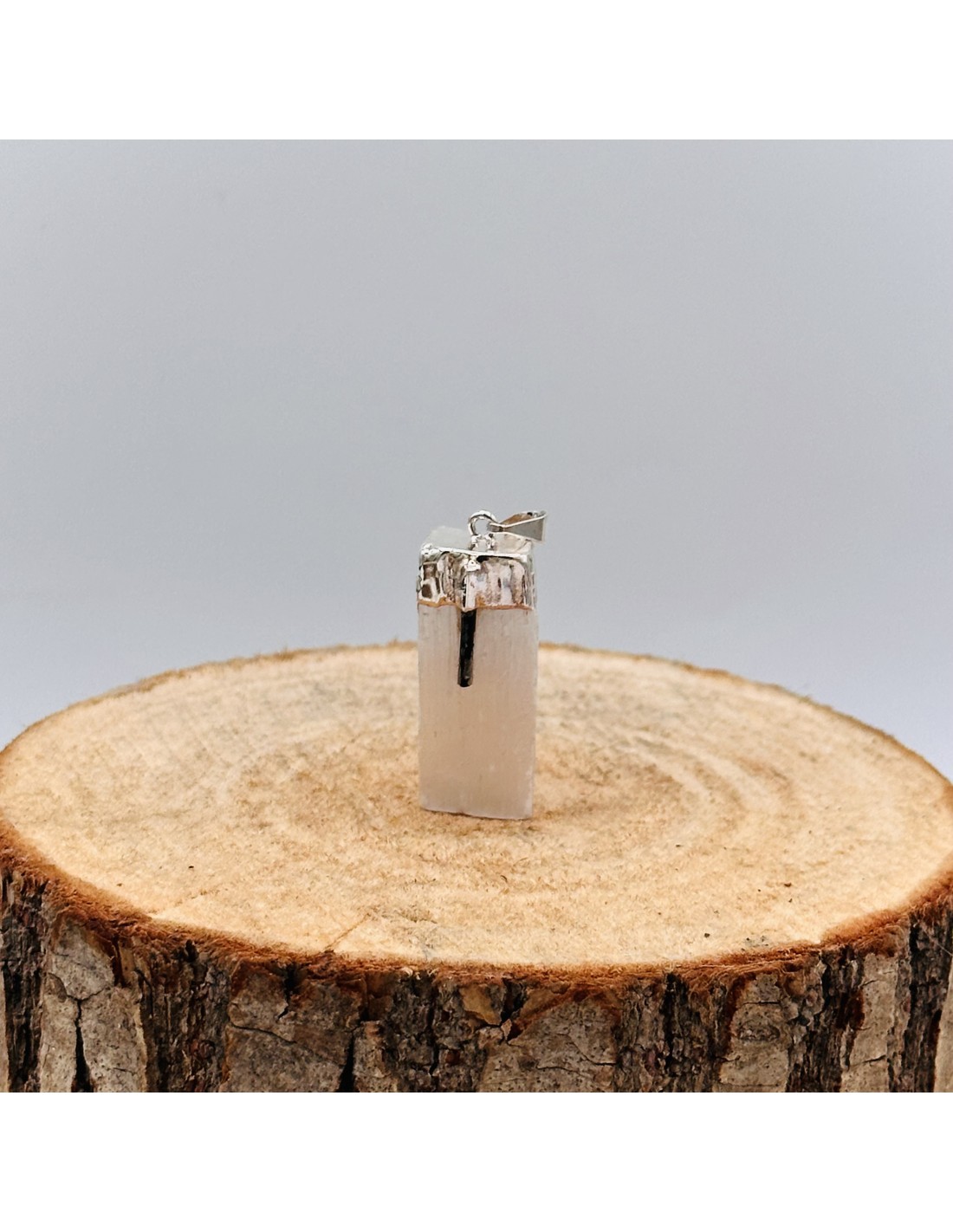 PENDENTE DE SELENITE COM TURMALINA NEGRA | LUZ PROTETORA E EQUILÍBRIO DO CAMPO SUTIL