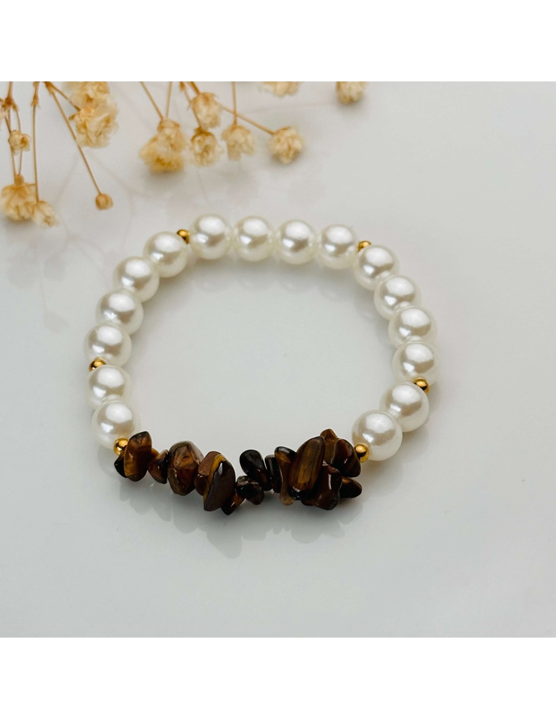 A união do olho de tigre com as pérolas cria uma sinergia poderosa entre força, proteção e equilíbrio emocional. Esta combinação atua de forma firme e consciente, fortalecendo a energia pessoal e promovendo uma sensação de segurança, determinação e presença interior.