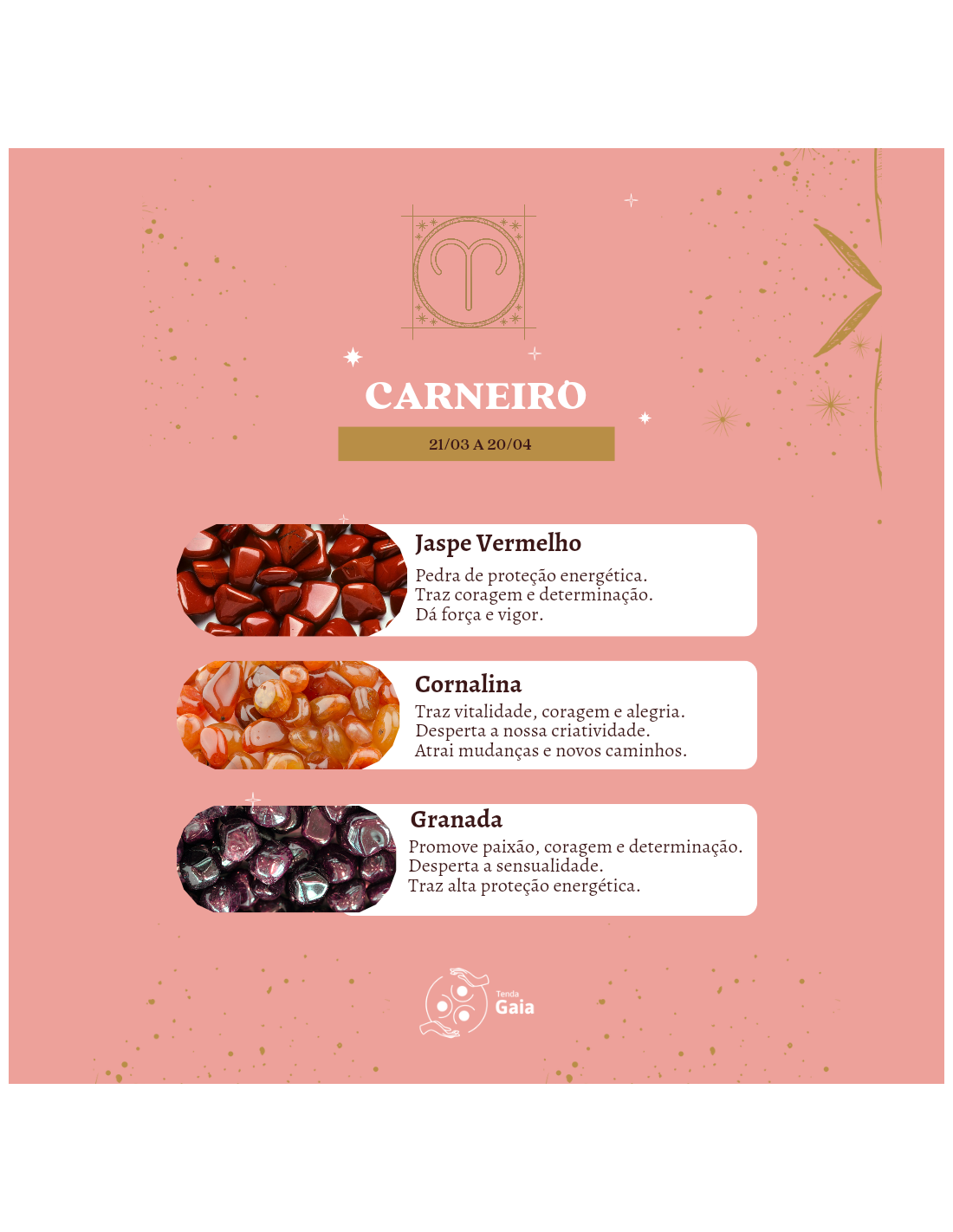 Cada pedra foi escolhida com intenção, para nutrir as qualidades de Carneiro e equilibrar os seus desafios: