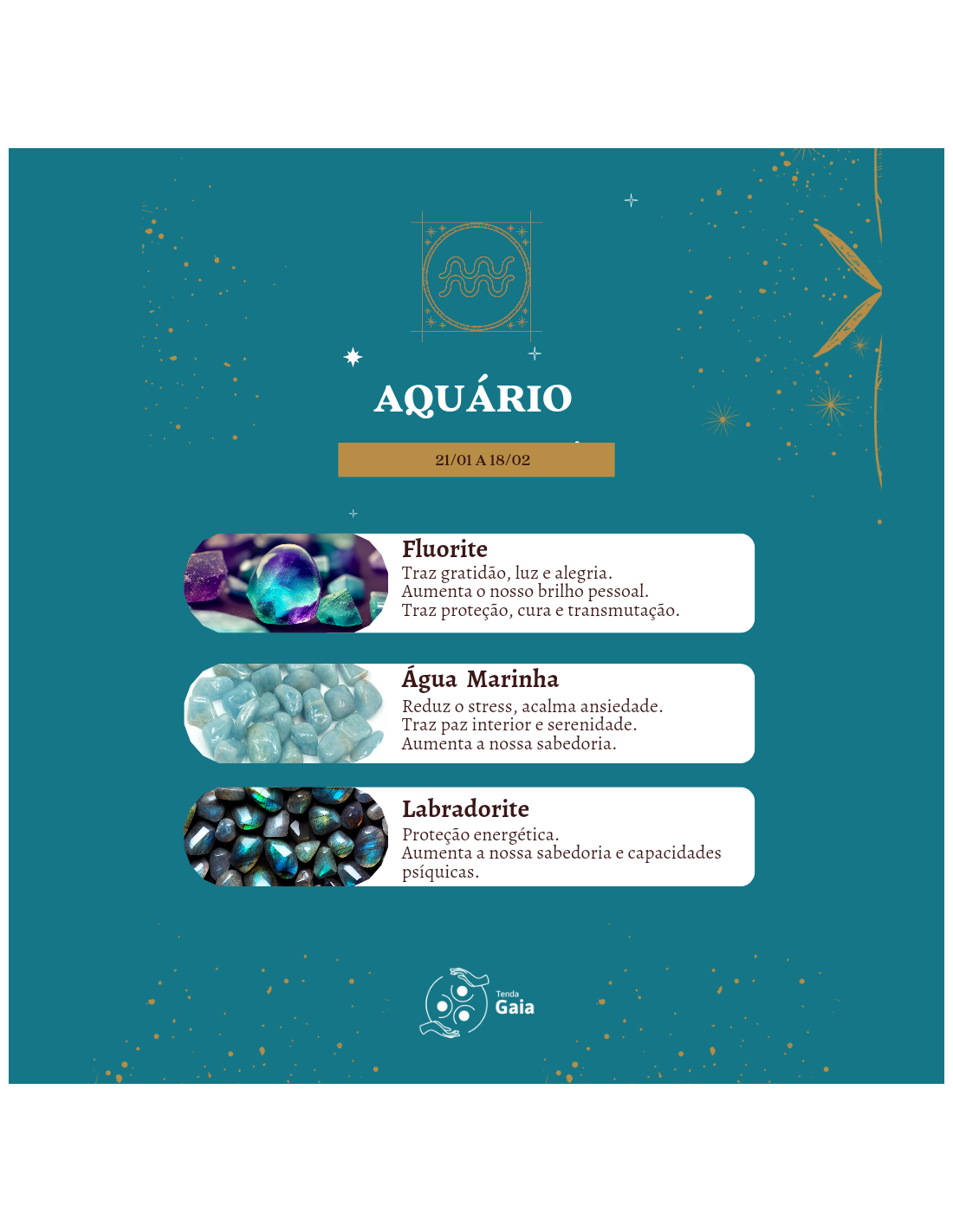 Cada pedra traz vibrações únicas que apoiam Aquário na sua jornada de autoconhecimento e expansão espiritual: