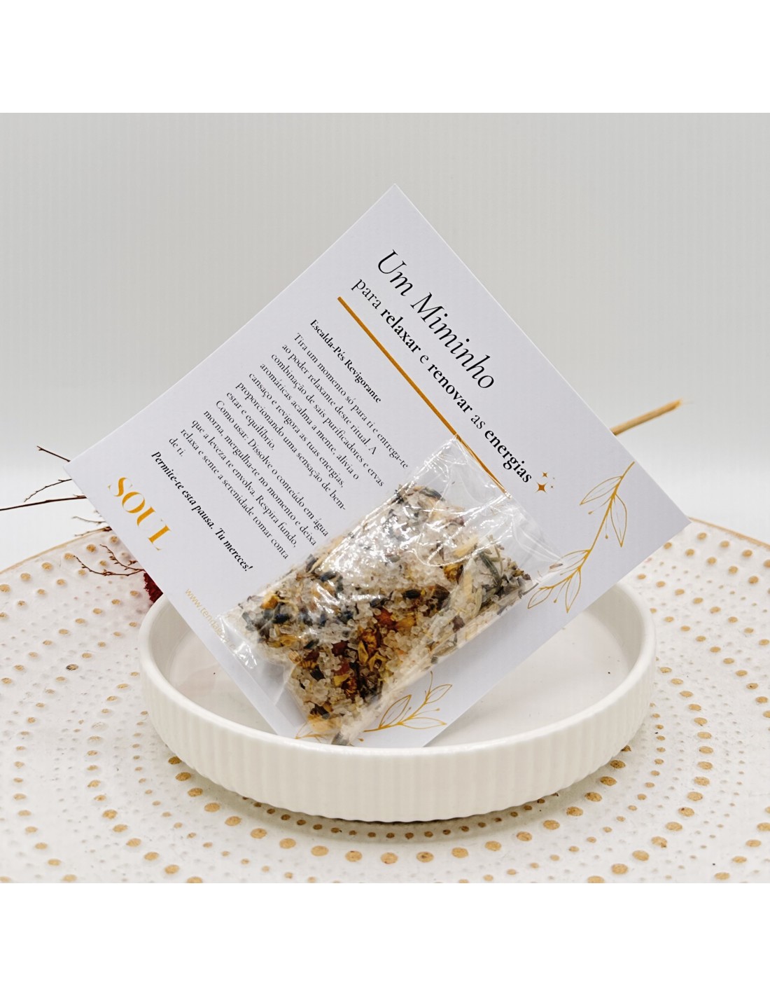 O Miminho Escalda-Pés Relaxante é um convite suave para cuidares de ti com ternura, presença e amor próprio. Este ritual foi criado para te oferecer um instante só teu, onde o corpo descansa, a alma respira e a energia reencontra equilíbrio. A combinação de sais purificadores com ervas aromáticas atua libertando tensões, acalmando emoções e restaurando a leveza que, muitas vezes, se perde no ritmo acelerado do dia a dia.