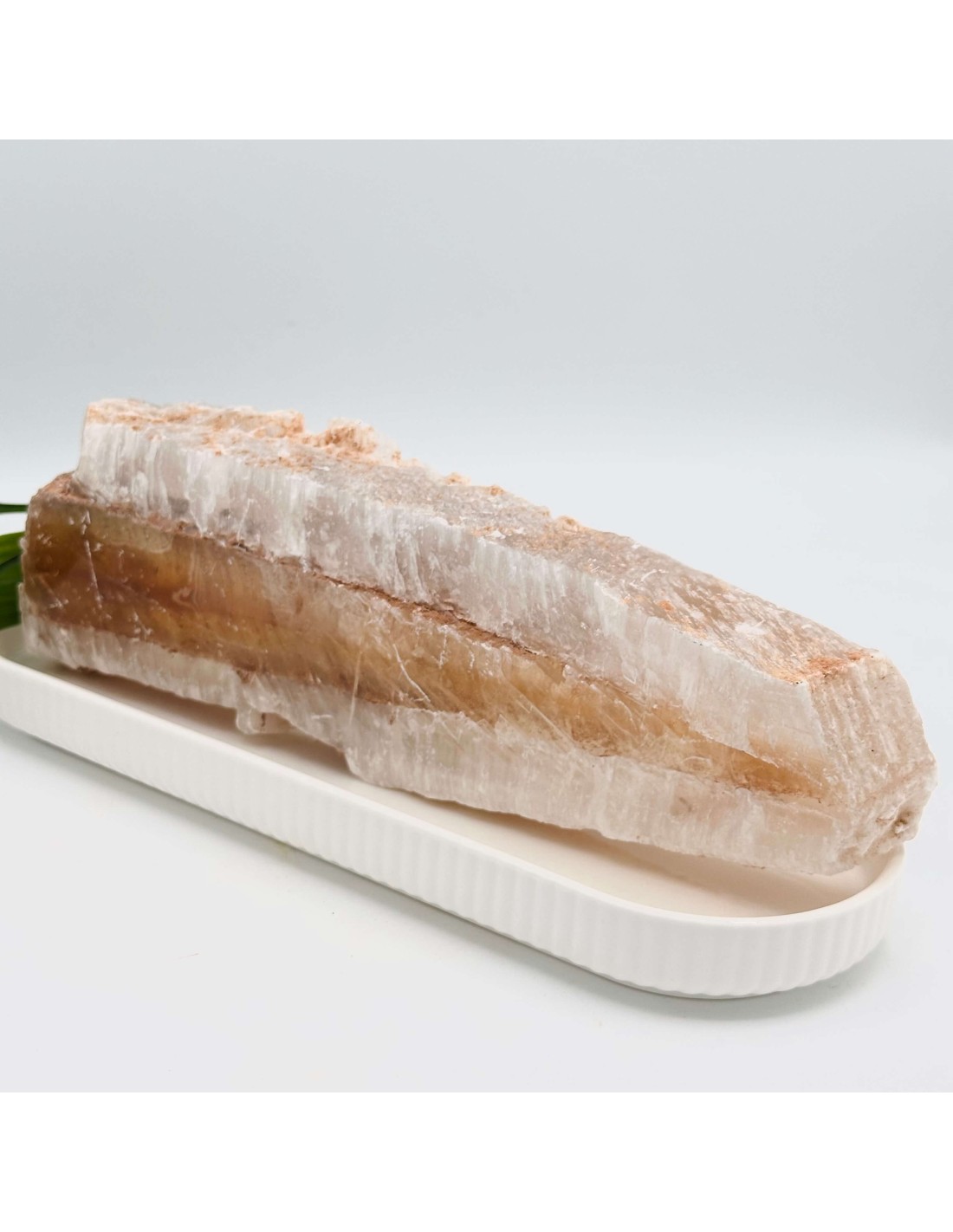 A selenite mel manifesta uma energia luminosa e profundamente transformadora que nutre a aura com vibrações elevadas e clareza interior. A sua tonalidade dourada irradia calor espiritual, dissolvendo bloqueios emocionais e abrindo espaço para uma perceção mais ampla e consciente. Este cristal potencia a expansão do campo energético, restabelecendo equilíbrio, foco e uma sensação tranquila de proteção.